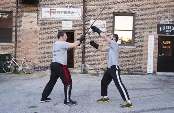 To start the class Jesse and fitness director Keith Jennings had us pair up. Wearing the armor and fighting using just the bare hands is an intense workout.